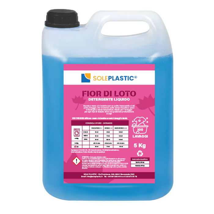 Lotus flower liquid detergent by hand or washing machine for impeccable cleanliness from the first wash. For a clean white without stains and brilliant colors even at low temperatures. Ideal for washing all types of fabrics, both natural and synthetic, it gives a pleasant scent to the garments.