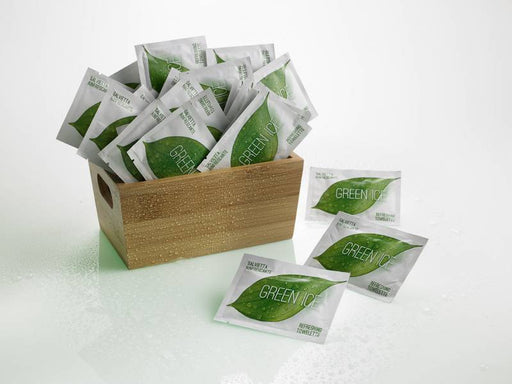 Visualizza tutti i dettagliSalviette Green Ice thè verde rinfrescante in TNT biodegradabile, imbustata singolarmente, cm9x7 – 500/1000pezzi SALVIETTINE RINFRESCANTI AL THE VE...