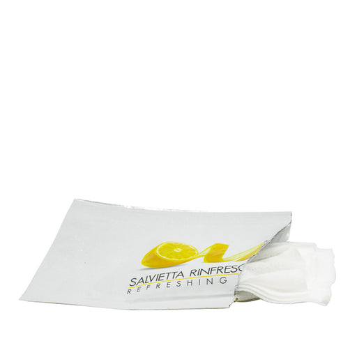 Salviette monouso rinfrescanti al limone, 70x100mm Le Salviettine Rinfrescanti sono realizzate in TNT e sono confezionate singolarmente; queste sa...