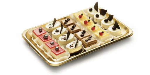 Visualizza tutti i dettagliVassoio Kadò dorato 19X13 n° 1 – Disponibilità 100/400 pezzi Porta Paste Kadò Dorato Misura 1. il vassoio può essere dotato di un coperchio alto tr...