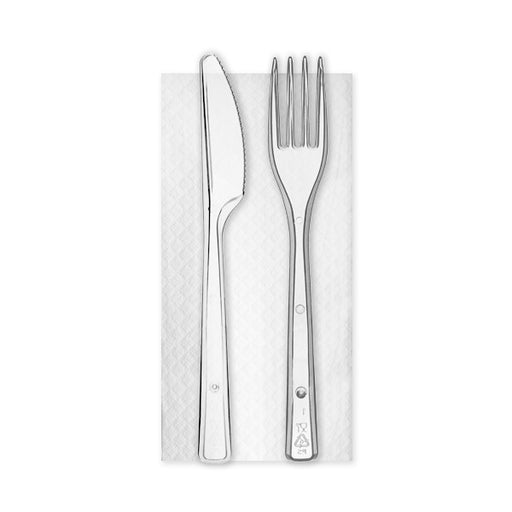 Visualizza tutti i dettagliBis di posate imbustate in plastica trasparente da 17 cm. Bis di posate riutilizzabili in plastica Trasparente con certificato di conformità. Posat...
