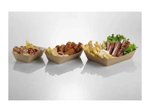View full detailsTray for fried foods, kraft/pe, various quantities and sizes, havana color – Availability: 125/500/1000 pieces The Avana fried food trays are m...