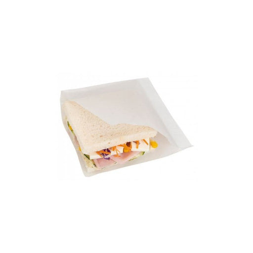 View full detailsWhite 34g anti-grease paper sandwich bag open on two sides measuring 17x18cm. Oleophobic greaseproof paper 34 g/m2, suitable for contact with d...