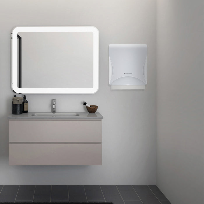 Dispenser for paper towels with "V", "Z" or "C" fold, Osviplastic brand, matt white model, economical solution to equip any bathroom with paper towels. To be mounted directly on the wall, it is suitable for "V", "Z" or "C" shaped hand paper packs , sold in shops and online. Ideal for the toilets of offices, restaurants, bars, companies, or other commercial activities , it offers perfect hygiene when drying hands after washing: no contact with the dispenser or with the next sheet of paper is in fact necessary to take the paper.Technical specifications