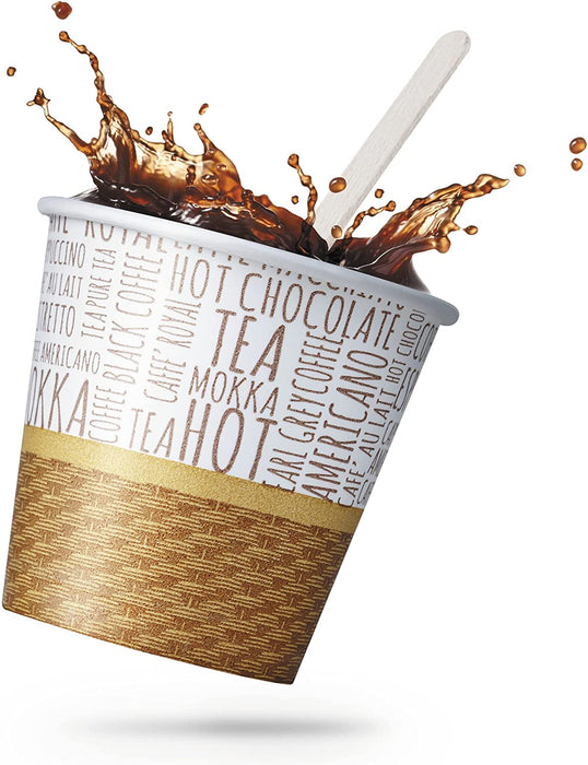 - 🍀 ÉCOLOGIQUE - Nos verres sont le choix le plus écologique et respectueux de l'environnement car ils sont fabriqués en papier bio et compostable. Les agitateurs, quant à eux, sont en bois de bouleau naturel, résistant aux températures élevées et idéaux pour mélanger facilement votre boisson. Disons non au plastique et construisons un avenir plus vert !