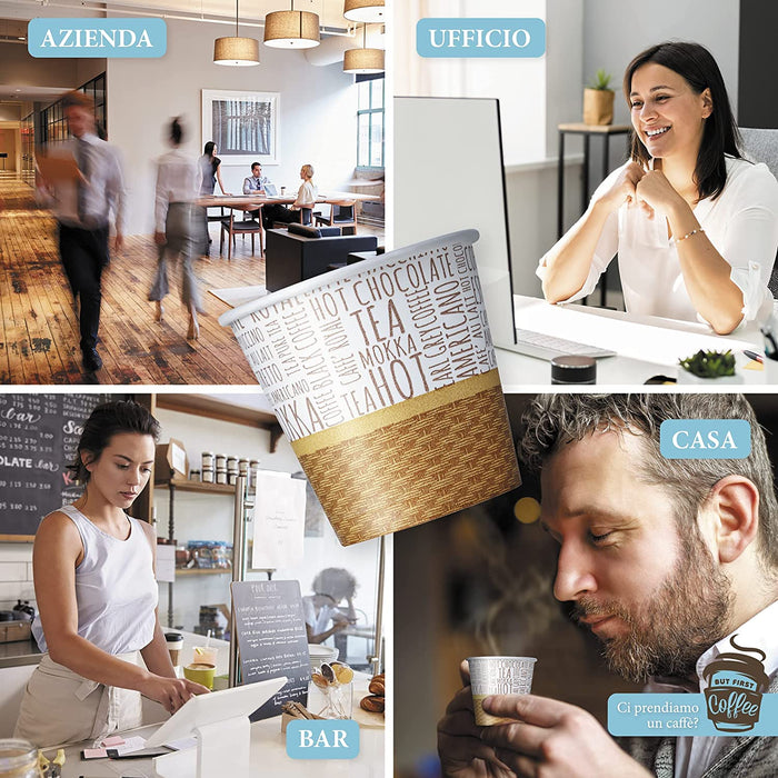- 💯 POLYVALENT - Les gobelets jetables Bluum sont parfaits en entreprise, au bureau, au bar ou à emporter, à l'hôtel et à la maison. Le produit est vraiment polyvalent car, outre l'espresso, la tasse convient également au cappuccino, au thé, aux tisanes, au chocolat et aux boissons froides. La facture TVA de vos commandes professionnelles est également disponible avec Bluum.