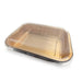 Couvercles rectangulaires en PET transparent recyclable compatible avec les barquettes Eclipse quatre portions en aluminium laqué. Les couvercles s'adaptent parfaitement aux bords des plateaux Eclipse et sont légèrement surélevés pour éviter d'écraser les aliments. Les couvercles transparents en PET peuvent être utilisés pour les aliments chauds et comportent également des lignes décoratives le long des bords, ce qui rend les plateaux Eclipse plus esthétiques. Ils sont destinés aux épiceries fines et aux restaurants, à l'exposition d'élégants comptoirs de vente à emporter de produits raffinés et à la livraison à domicile de plats gastronomiques.