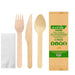 Trio en bois, fourchette 16cm, couteau 16cm, cuillère 16cm et serviette 3 épaisseurs 25x25cm