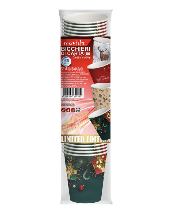 Bicchieri in Cartoncino Bio MIX NATALE 180ml con Coperchio