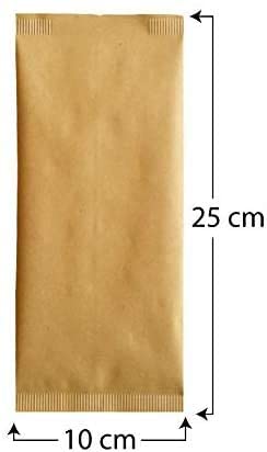Buste porta posate in carta paglia di colore Avana. Dimensioni 10x25cm. con tov. doppio velo da 38x38cm. Confezione da 1000pezzi