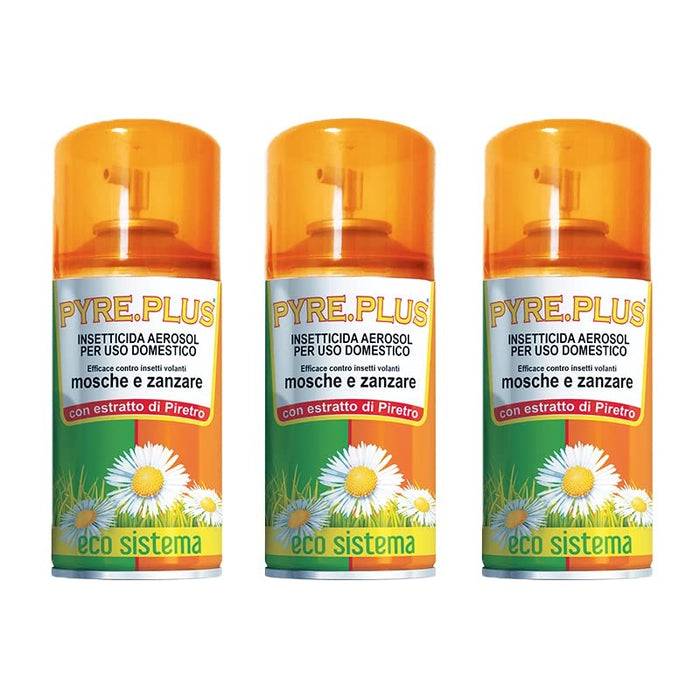 Insetticida Pyre.Plus Mosche e Zanzare Bomboletta spray da 250ml con erogatore. Disponibilità da 1/3/6pezzi