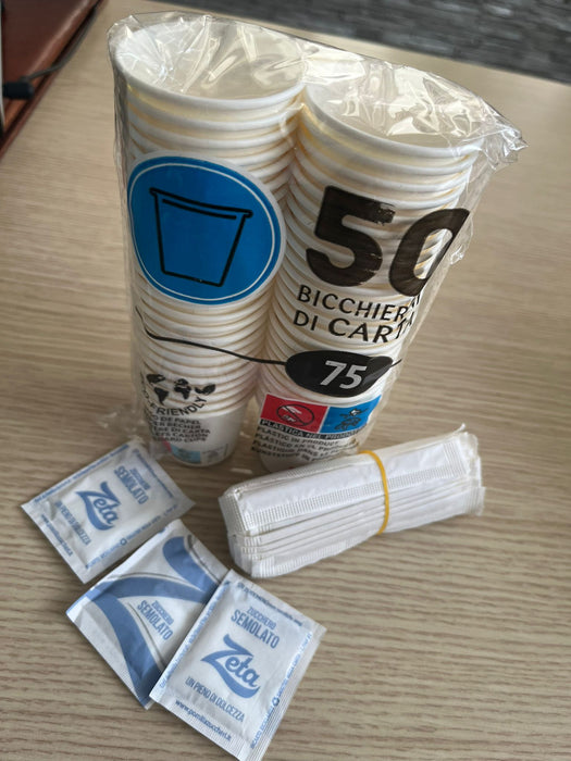 Il Kit contiene Bicchieri in Cartoncino Biodegradabili sono realizzati in Italia con materiali di altissima qualità, biodegradabile al 100%. Le palette in legno betulla sono imbustate singolarmente, ciò ne comporta una massima igiene. Lo Zucchero rispetta le normative CEE per tanto riconosciamo la sua alta qualità. Il tutto è conforme per l’uso alimentare e quindi il suo utilizzo non comporta rischi per la tua salute.