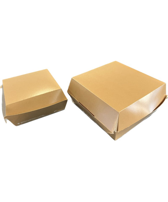 La caratteristica principale della scatola porta hamburger è il rivestimento esterno in carta avana kraft, che rende l'articolo particolarmente distintivo ed unico nel suo genere, mentre a tatto si apprezza la lavorazione rustica del prodotto che si sposa perfettamente con la sua natura di scatola riciclabile e biodegradabile.