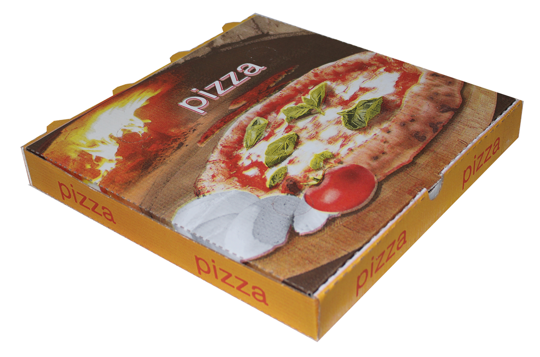 Contenitori porta pizza colore avana con chiusura americana da 30×40 cm altezza 5cm; disponibile in confezione da 90 pezzi con grafica Random a seconda della disponibilità.