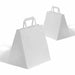 Shopper di carta Bianca Kraft formato Take Away con maniglia piatta ideali per il trasporto o il confezionamento degli alimenti quali dolci, caramelle, pane, pizze, confetti e articoli da forno di ogni genere.